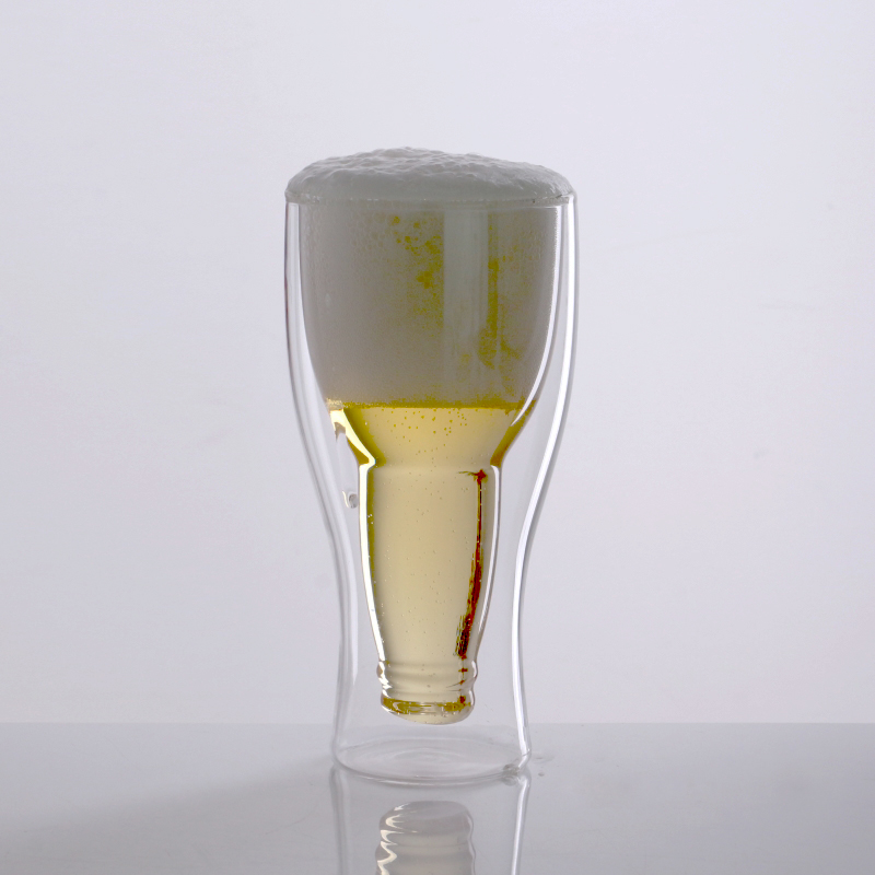 12oz زجاجة بيرة مقلوبة على شكل كوب زجاجي مزدوج الجدار