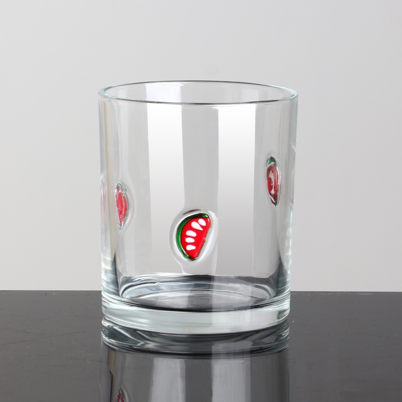 جرة شمعة زجاجية فارغة مرصعة بالفواكه الشفافة سعة 7 أونصة - زجاج Ruixin