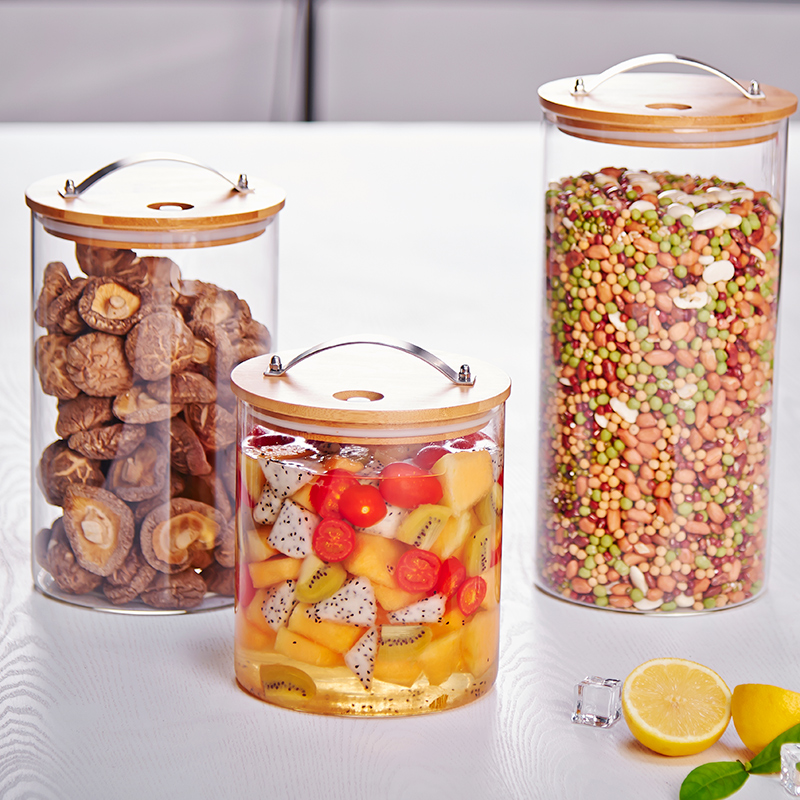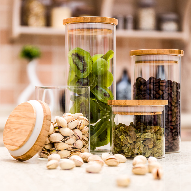 البورسليكات الزجاج الغذاء الحاويات مع الأغطية الخشبية
