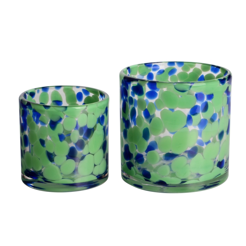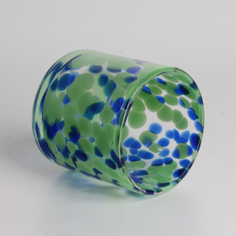 صناعة يدوية 250 مل 6 أونصة وعاء شموع زجاجي مزخرف باللونين الأخضر والأزرق