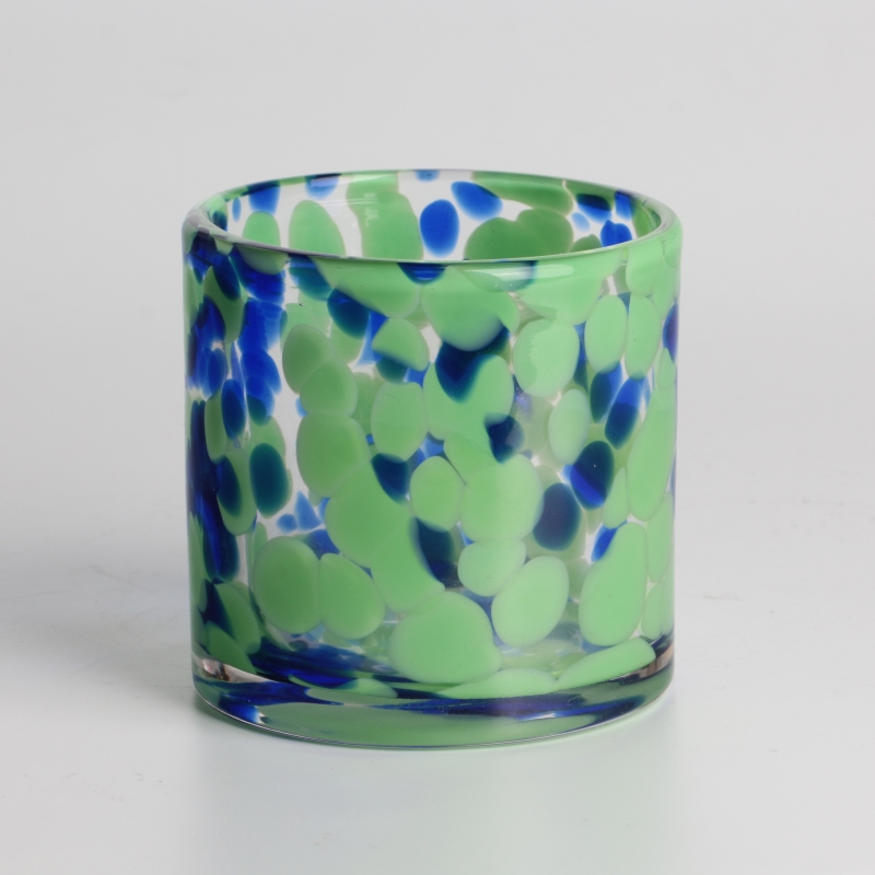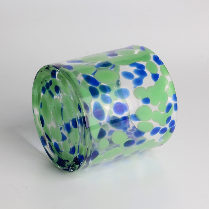 صناعة يدوية 500 مل 13 أونصة وعاء شموع زجاجي مزخرف باللونين الأخضر والأزرق