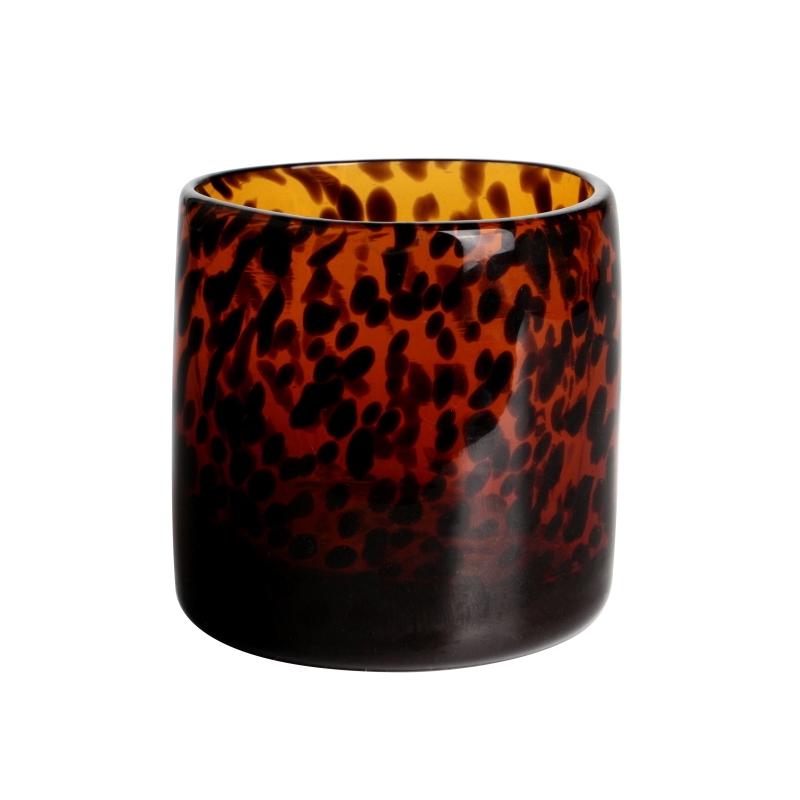 مصنوع يدويًا 240 مل 6 أوقية أسطواني على شكل نمر أسود مرقط جرة شمعة زجاجية
