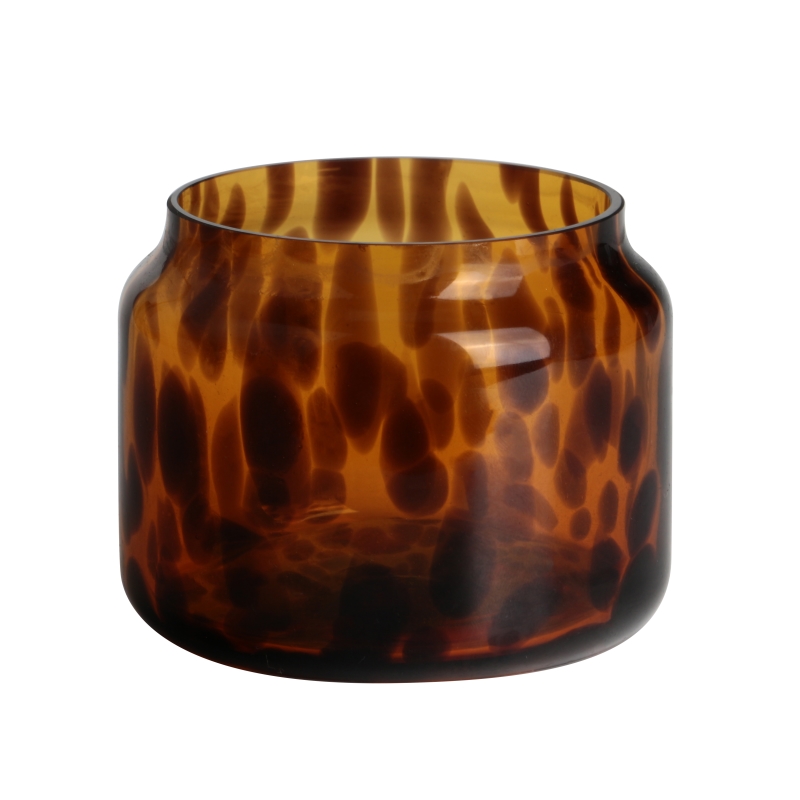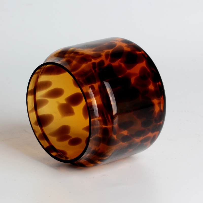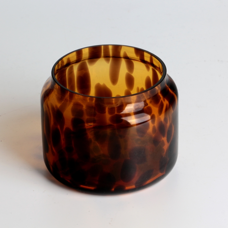 وعاء شموع زجاجي مصنوع يدويًا سعة 250 مل ووزن 7 أوقية على شكل نمر أسود مرقط