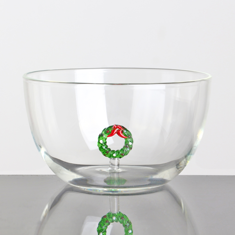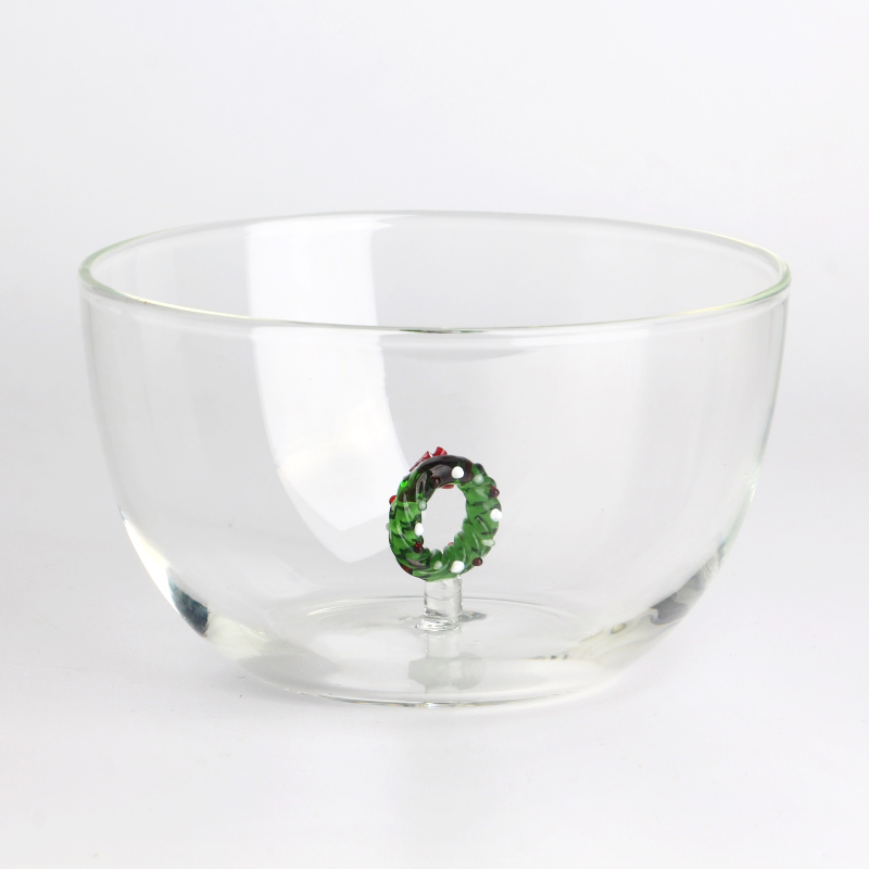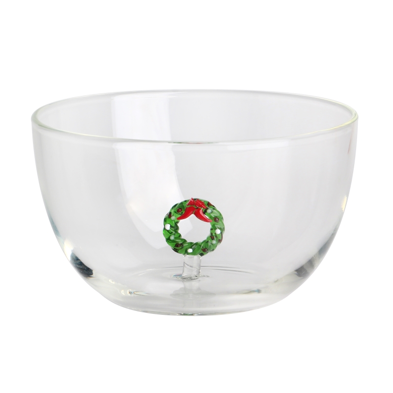 وعاء زجاجي سعة 600 مل سعة 20 أونصة مصنوع يدويًا مع إكليل عيد الميلاد ثلاثي الأبعاد بالداخل