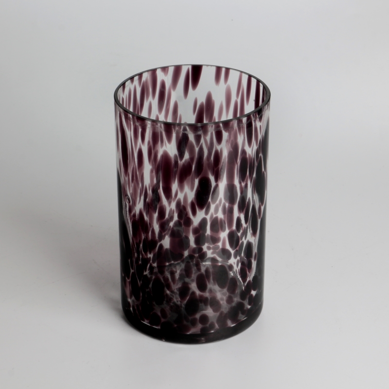 مصنوع يدويًا 900 مل 23 أونصة على شكل نمر أسطواني مرقط جرة شمعة زجاجية