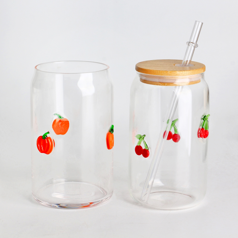 كوب زجاجي مصنوع يدويًا من البورسليكات عالي البورسليكات سعة 16 أونصة 500 مل مرصع باليقطين لتزيين الهالوين مع غطاء من الخيزران وقش خالٍ من مادة BPA وعصير قابل لإعادة الاستخدام وفنجان قهوة