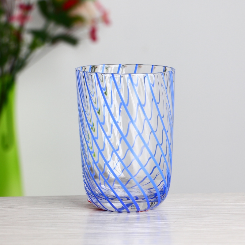 الرصاص الخالي من الكريستال 400 مل 14 أوقية كوب من الزجاج الأزرق الزجاجي الأزرق مخطط