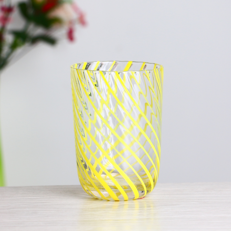 الرصاص الخالي من الكريستال 400 مل 14 أوقية كوب من الزجاج المصنوع من الزجاج الأصفر المخطط