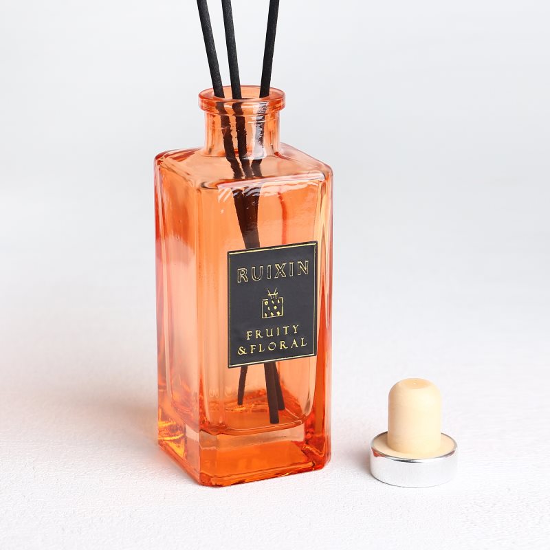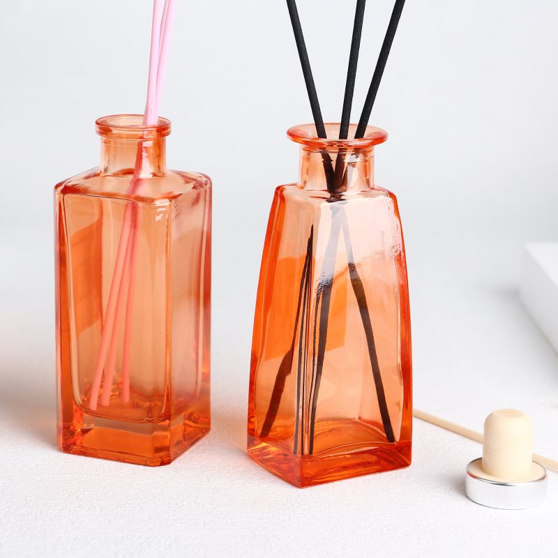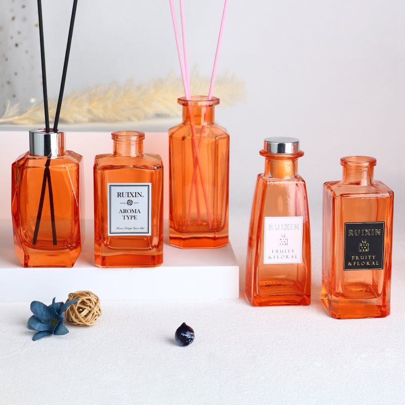 زجاجات ناشرة روائح برتقالية مربعة الشكل مع ملصقات