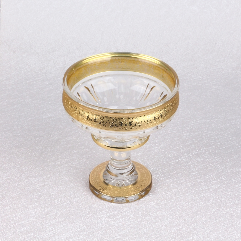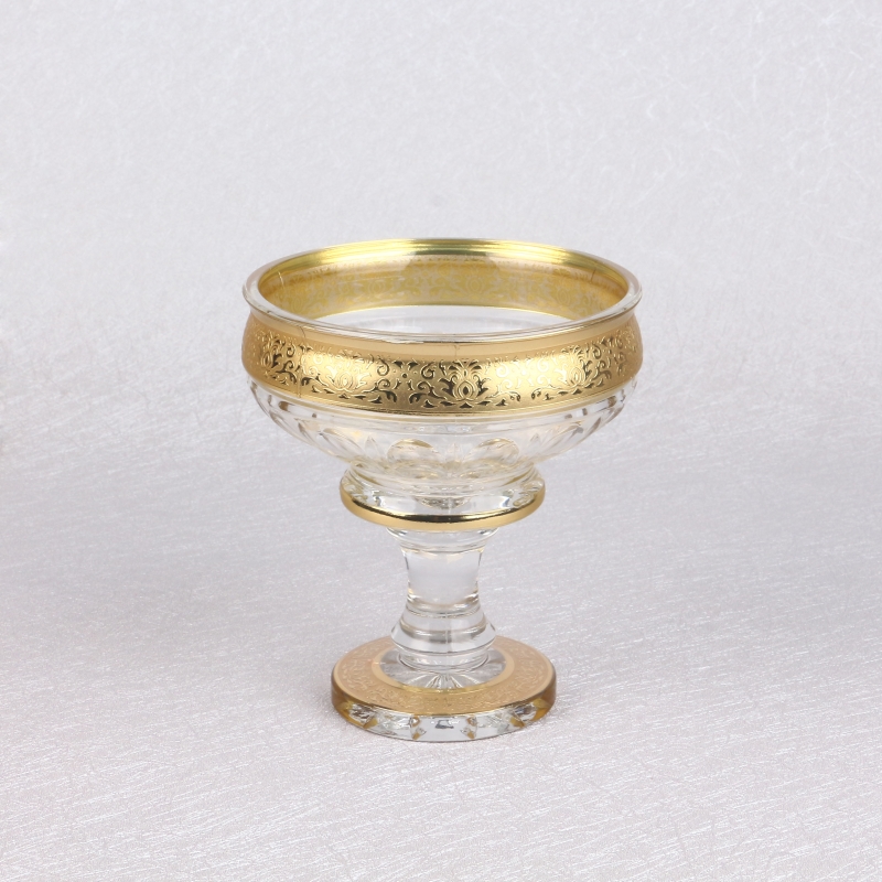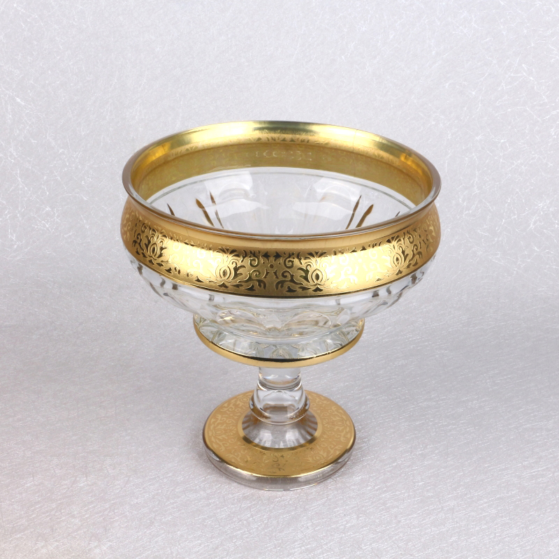 Wholesale Fast Delivery Uzbek Popular Bohemia Style Decorative Golden Plating Flowers Glass Fruit And Candy Bowl Set