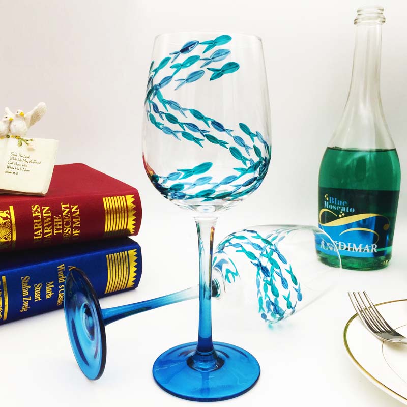 Diy benutzerdefinierte Weingläser und einzigartige Glasmalerei Designs Lieferant blau Weinglas zum Verkauf