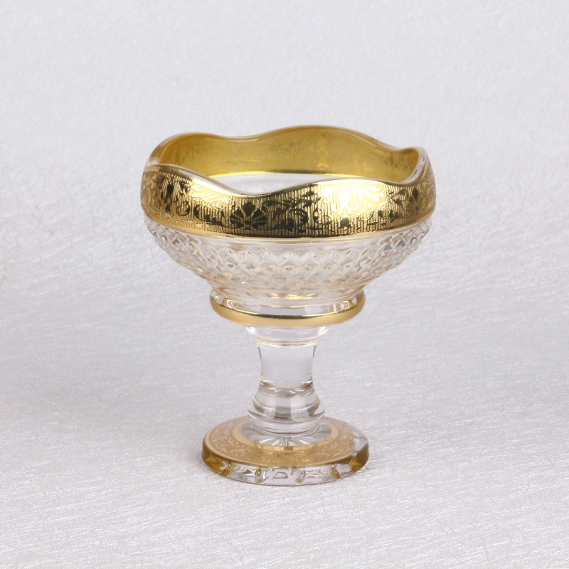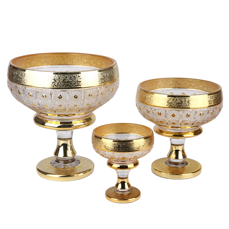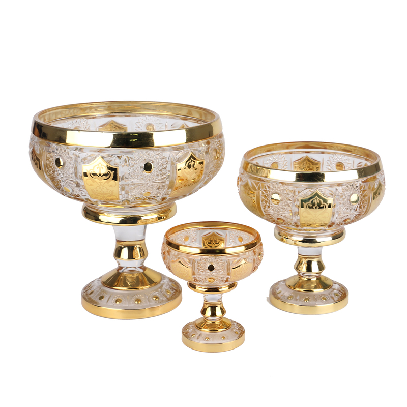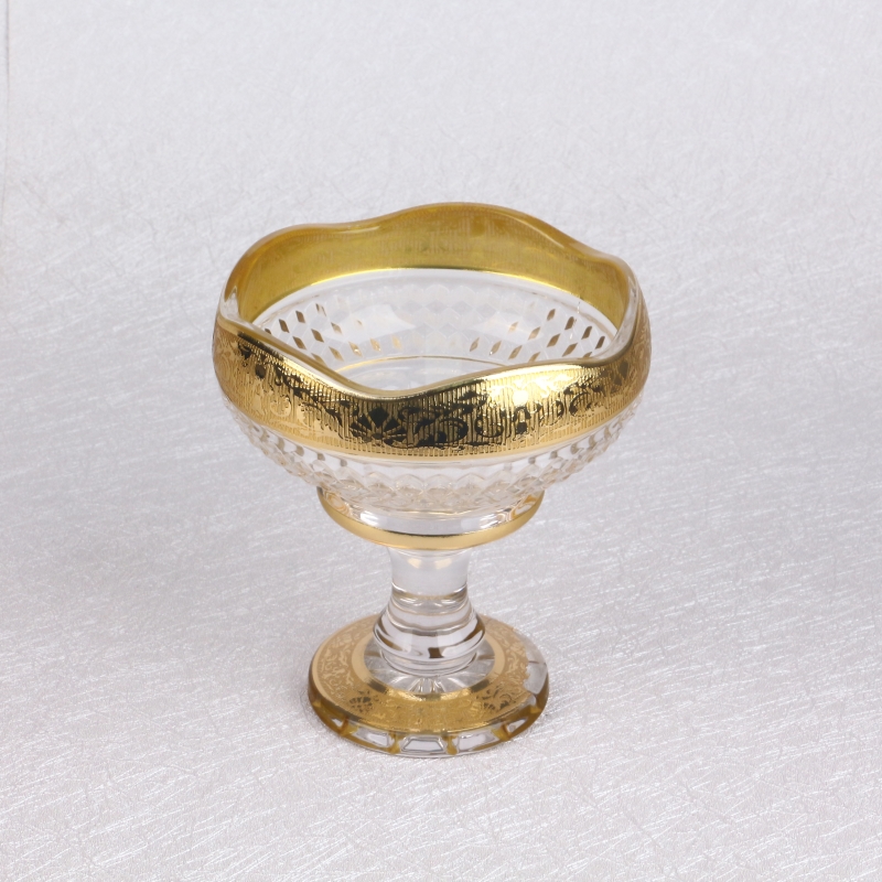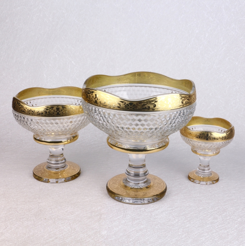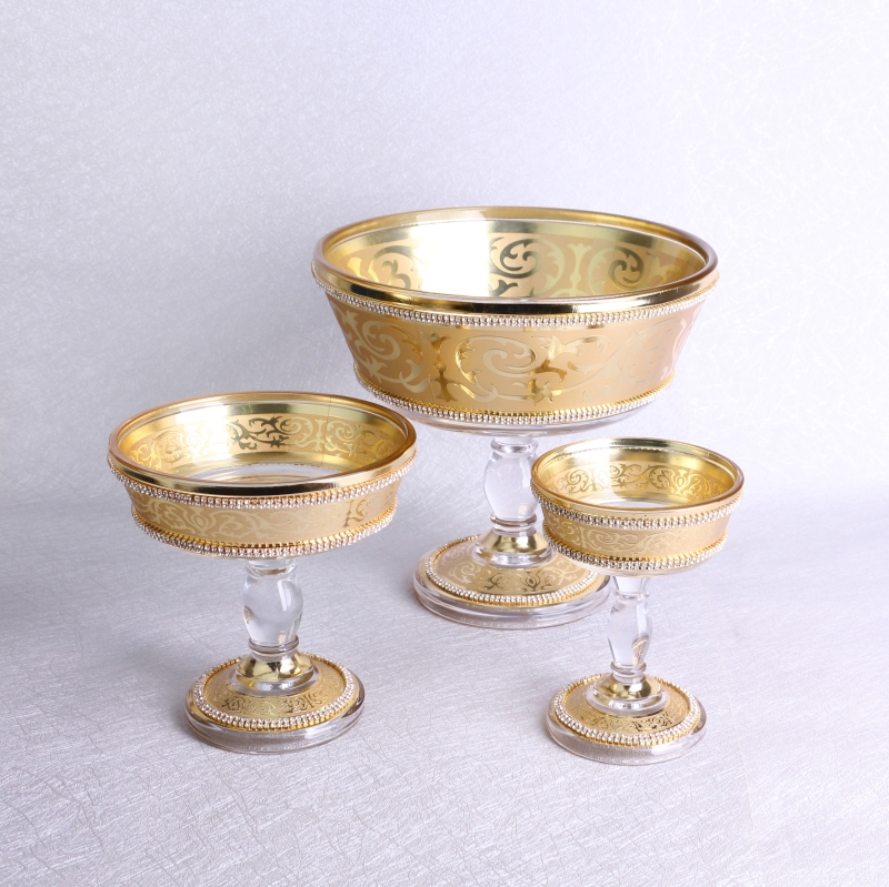 Factory Stock Delivery Popular Golden Plating Bohemia Glass Series Glass Fruit And Candy Bowl Set