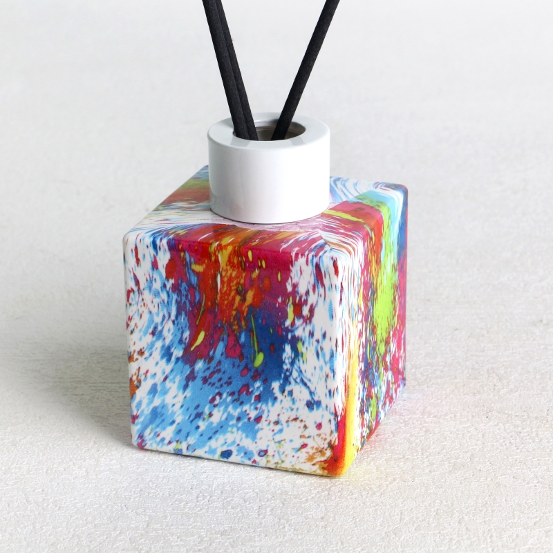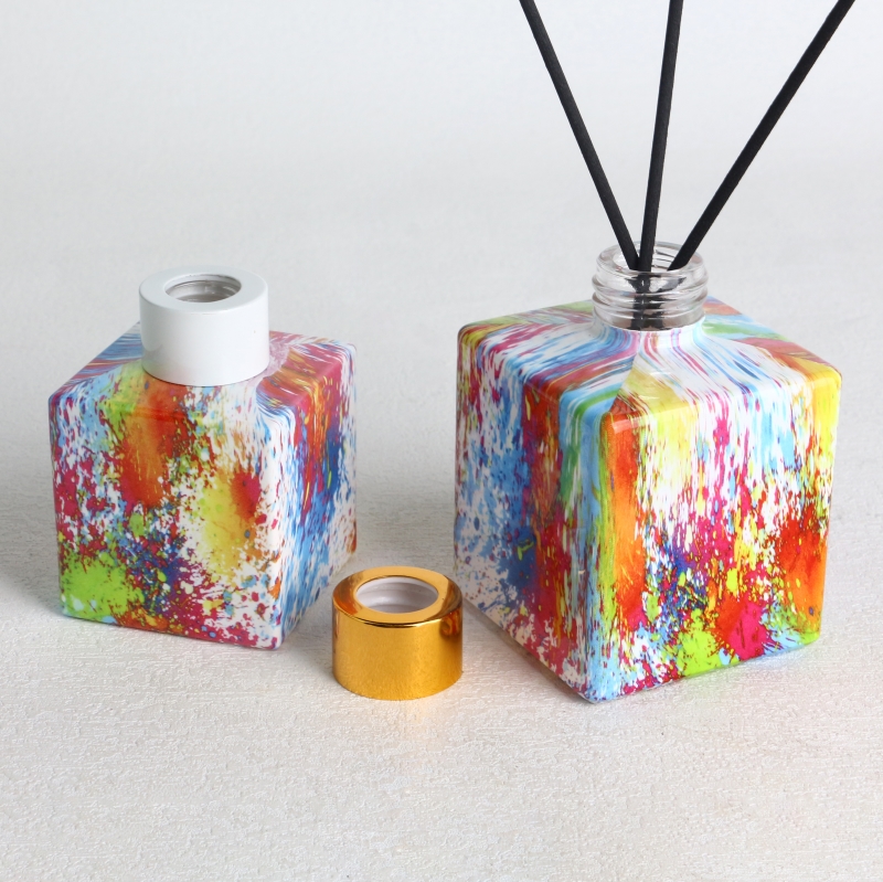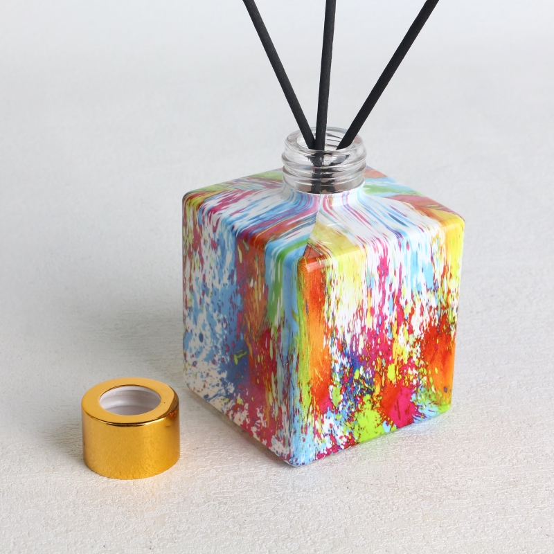 Wassertransfer fertig Ölmalerei Muster Quadratglas Diffusor Flasche Set von 2