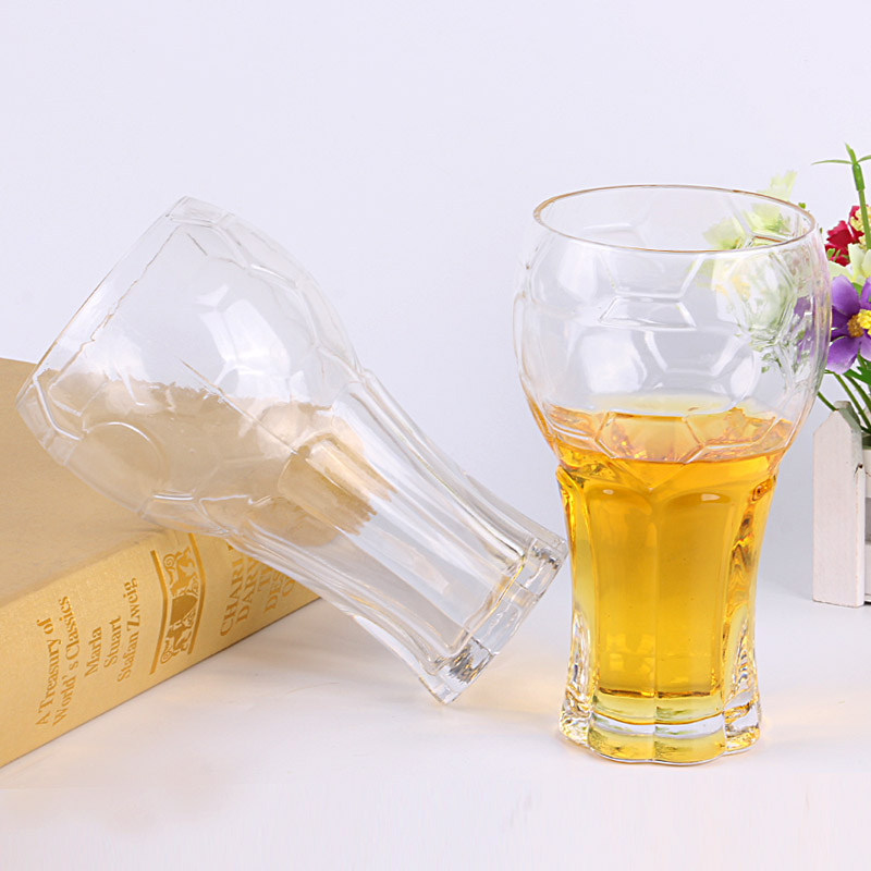 Popular bar proveedor de cerveza de vidrio tazas taza del fútbol tazas de cristal de altura por mayor