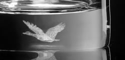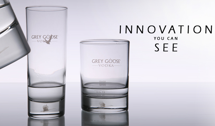 Ainsi que des points d'effervescence et des logos, des objets élaborés et les illustrations peuvent également être gravé au laser sous forme tridimensionnelle dans le fond d'un verre. Communication de marque ne reçoit pas beaucoup plus important que cela.