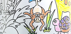 Tout comme un livre de coloriage, une surface blanche mate et les contours d'un motif sont imprimés sur le verre. crayons standard peuvent être utilisés pour colorer le motif.