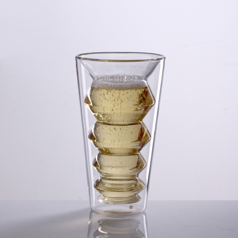 Gobelet en verre à pinte à double paroi en verre isolé de 6 oz pour la bière
