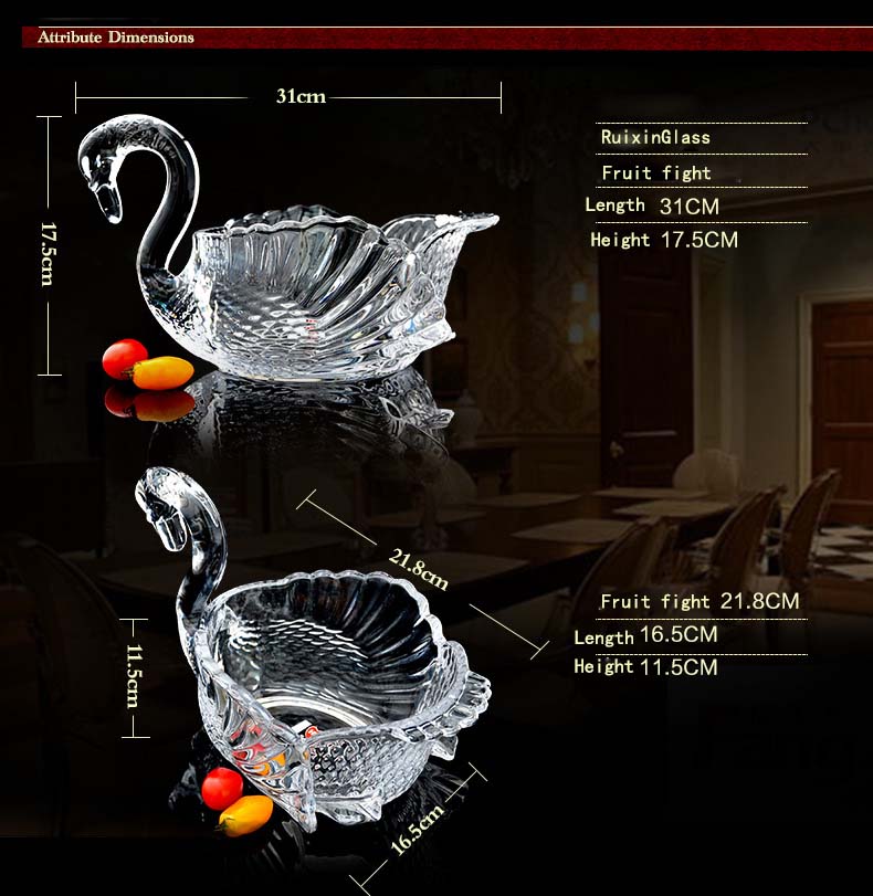 verre en cristal Swan fruits seau beau verre conteneurs de fruits gros