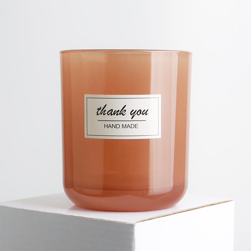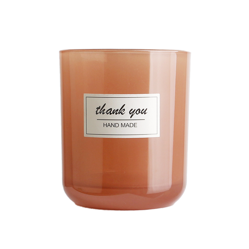 Portacandele in vetro ambrato traslucido con fondo curvo da 8 once 315 ml con etichetta adesiva