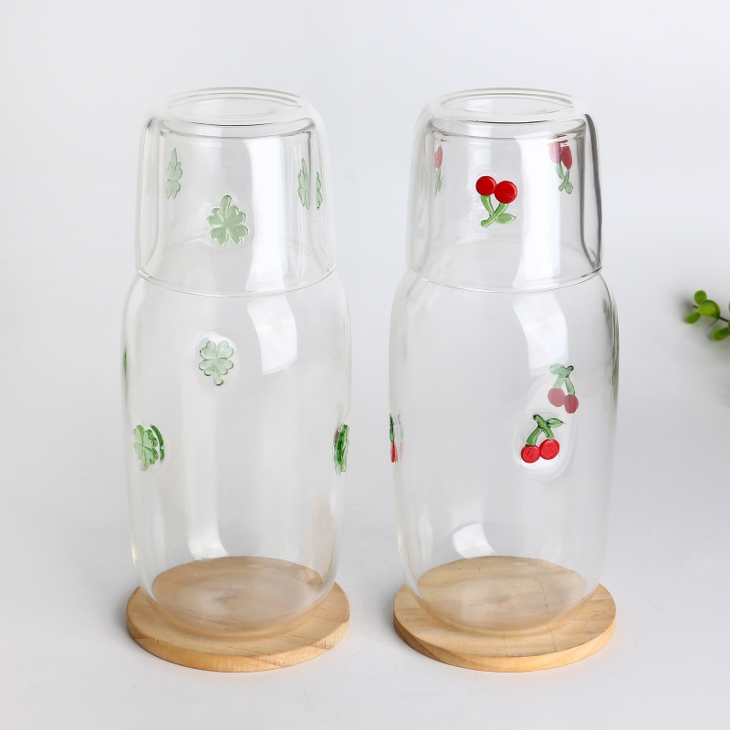 Brocca per acqua in vetro borosilicato da 1 litro con intarsio di trifoglio artigianale