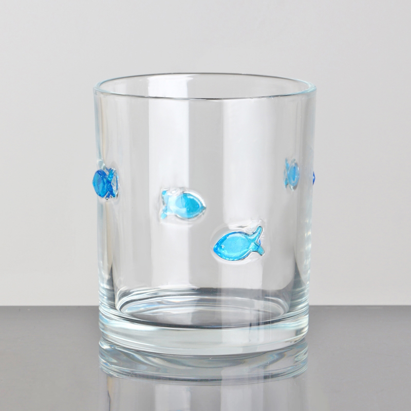 Contenitore per candele in vetro trasparente con decorazione a intarsio di pesce all'ingrosso