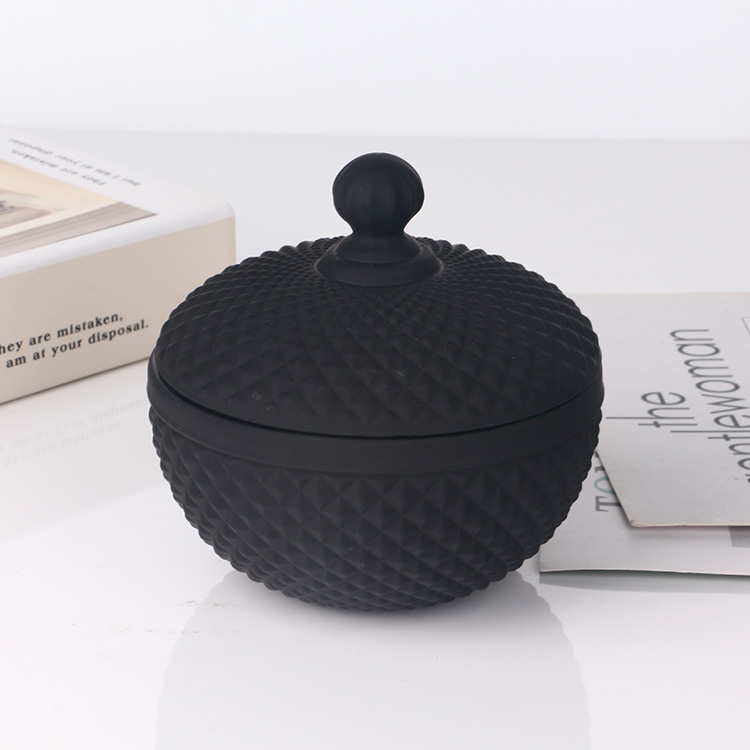 4オンス 10オンス カラー不透明ブラック マットジオカット ダイヤモンド ファセットガラス キャンドルジャー 蓋付き