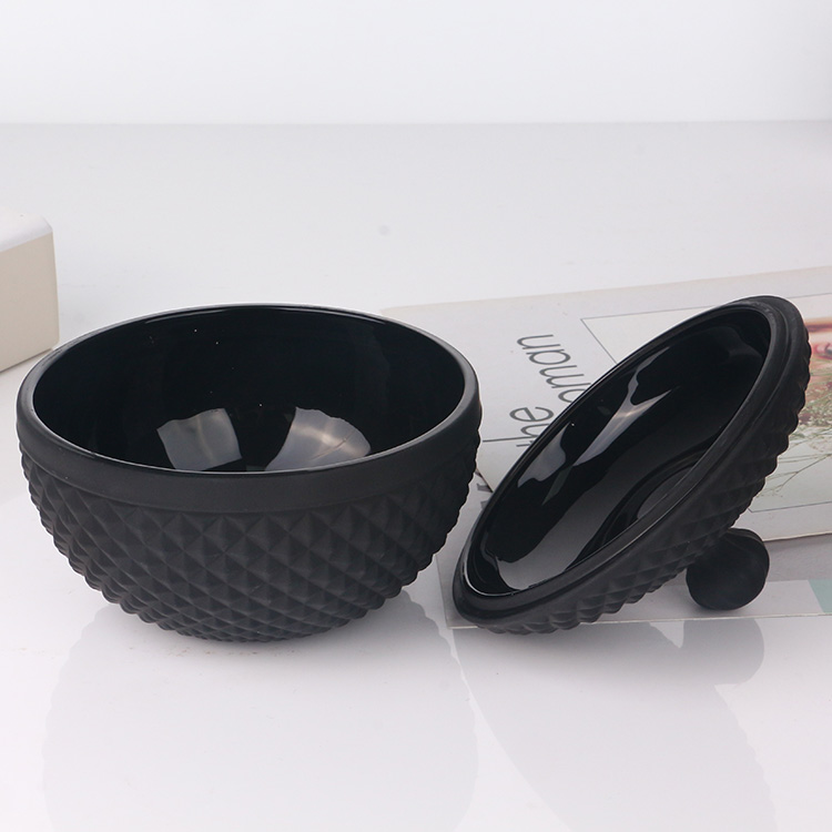 10オンス 不透明ブラックマットジオカットガラスキャンドルジャー 蓋付き