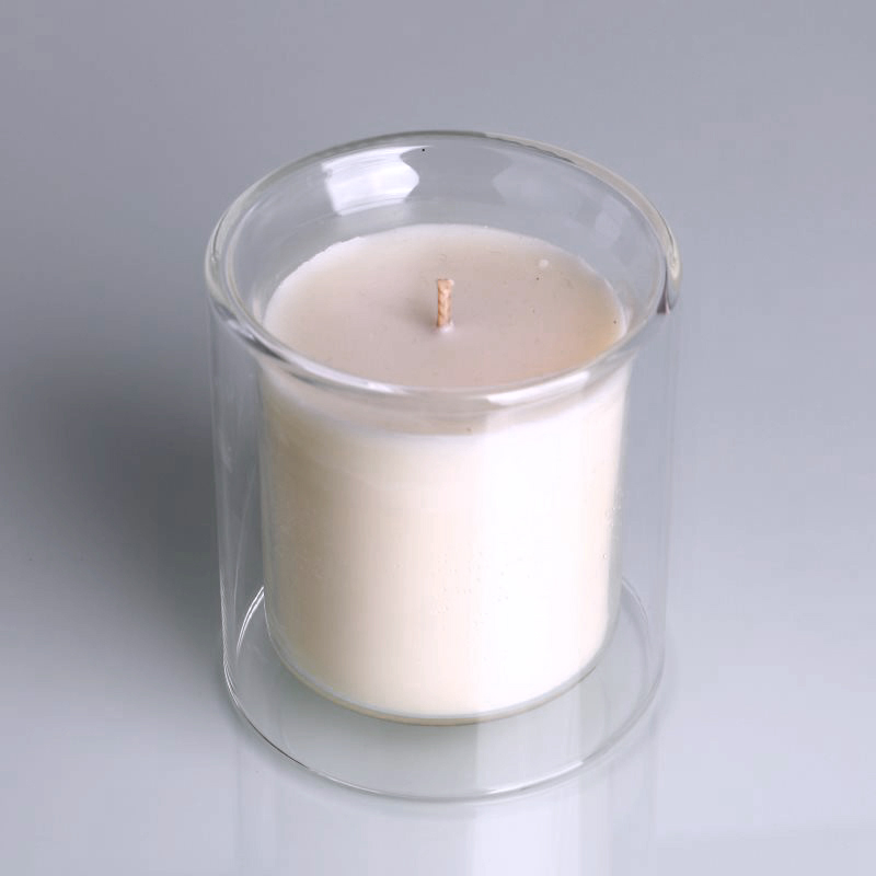 8oz 색상의 이중 벽 유리 캔들 항아리. 간장 왁스 향이 나는 양초