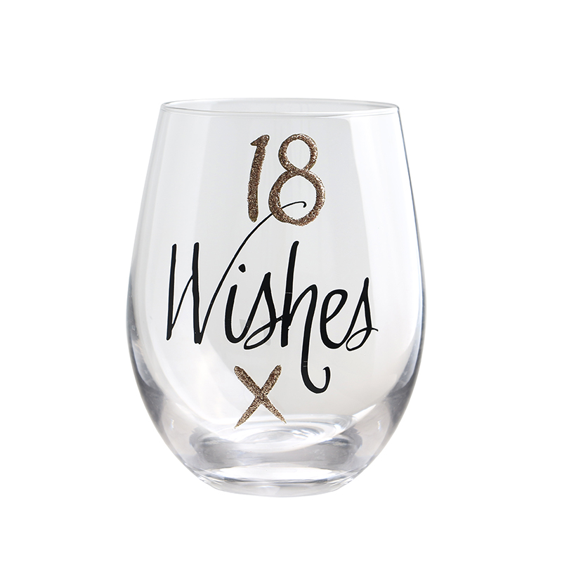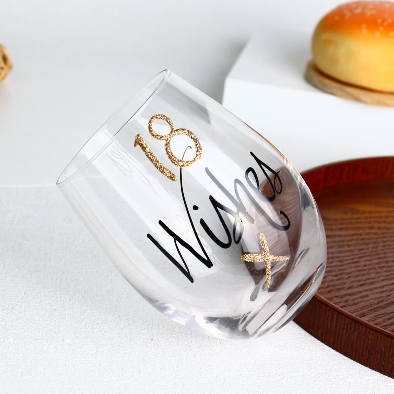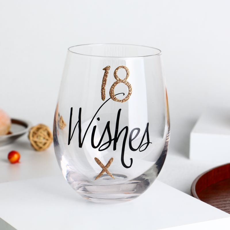 금 스탬핑 18 생일 데칼이있는 스템리스 와인 잔
