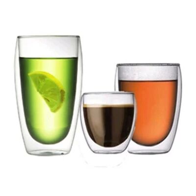 Double glasses material is Pyrex glass, catering for food-grade glass, through more than 600 degree temperatures firing from, usually is made of borosilicate glass tube, inside and outside the pipe after technicians under the sealer and baked into, is a new type of environmentally friendly cups, more and more people of all ages.