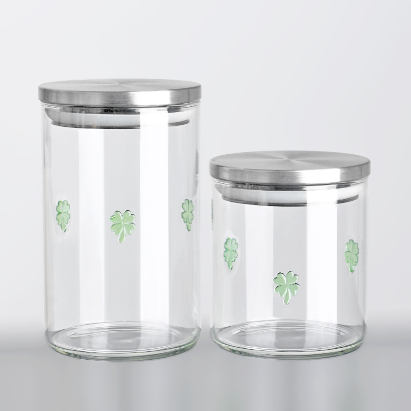 Borosilicaat klaver inlegglas voedselopslagpot luchtdicht
