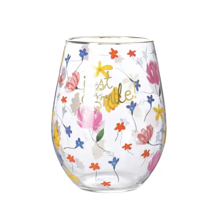 Aangepaste bedrukte bloem stengelloze drink wijnglazen bekers