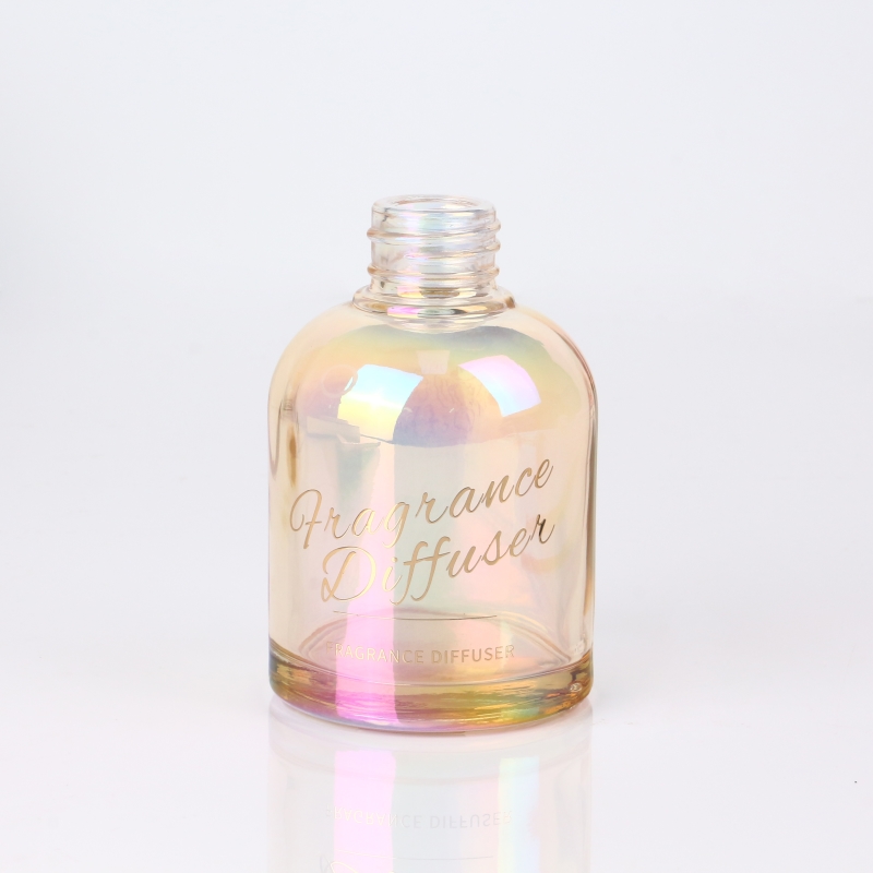 210ml 7oz electroplated iridescent round glass reed diffuser bottle with screw cap