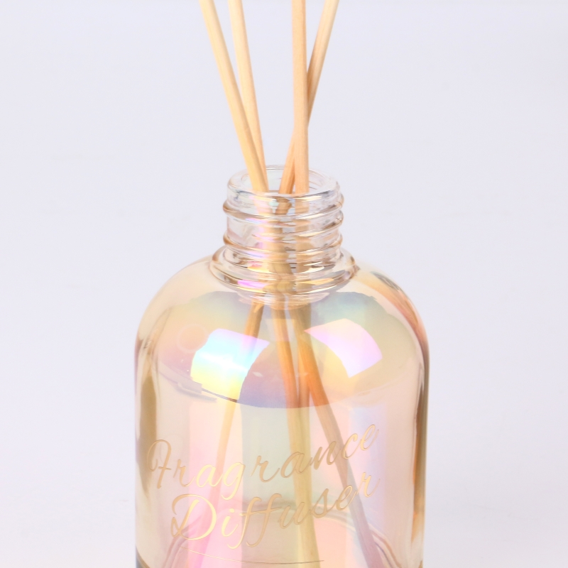 Iridescent round glass reed diffuser bottle with screw cap