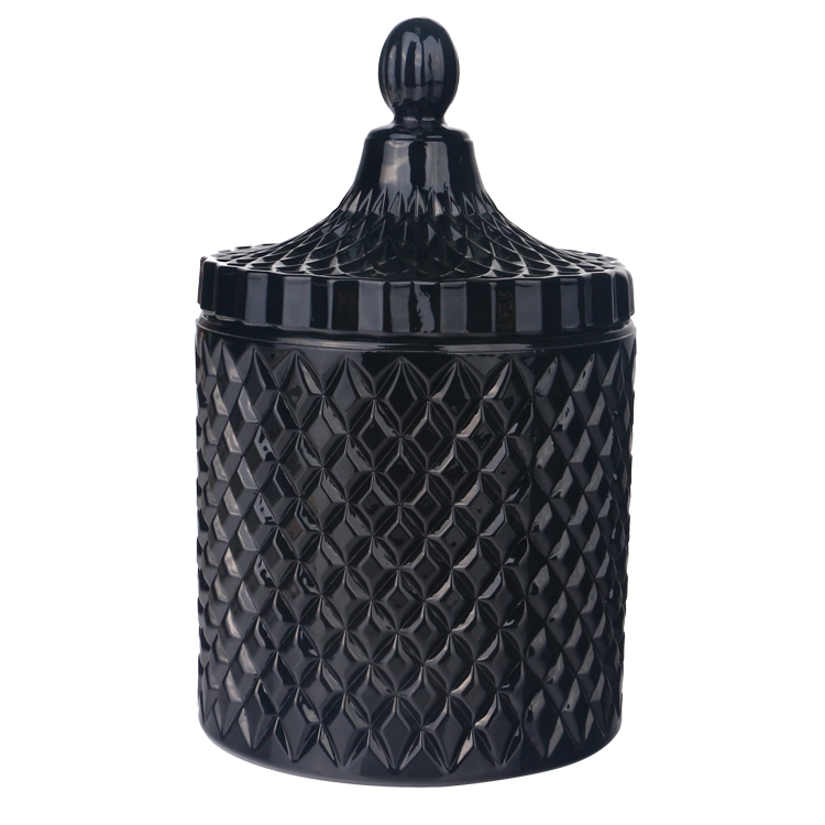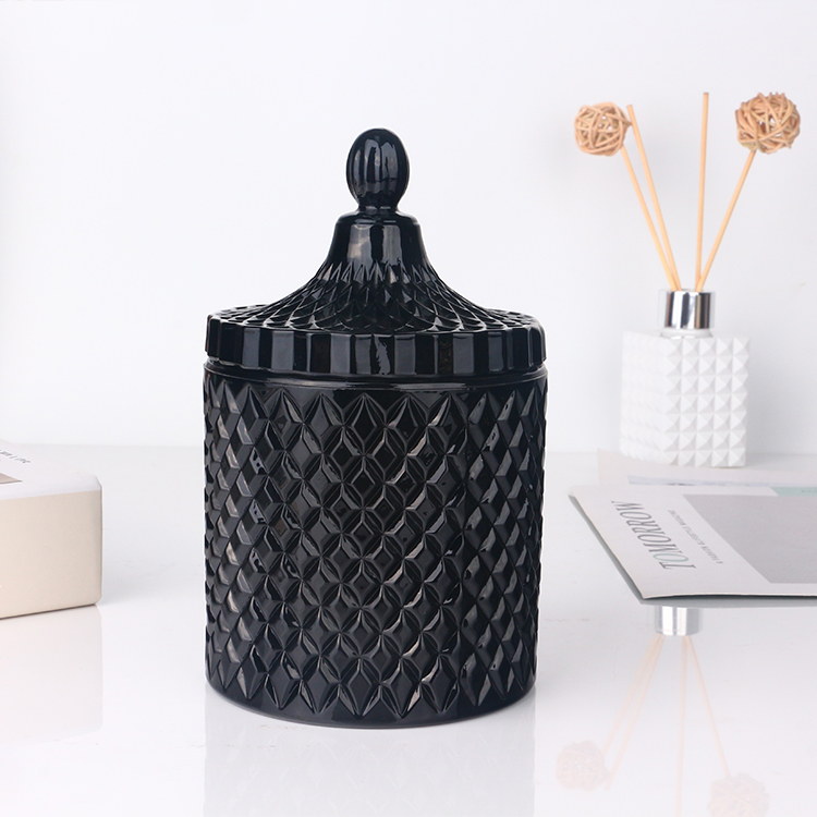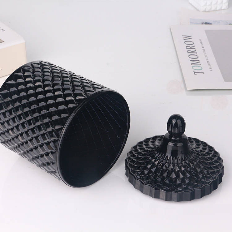 Colored opaque black glossy glass candle jar with lid