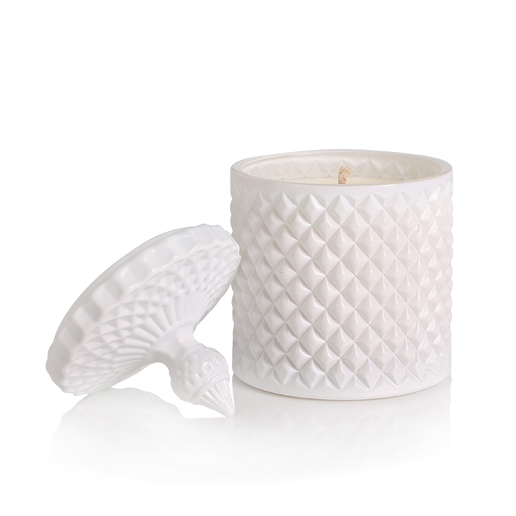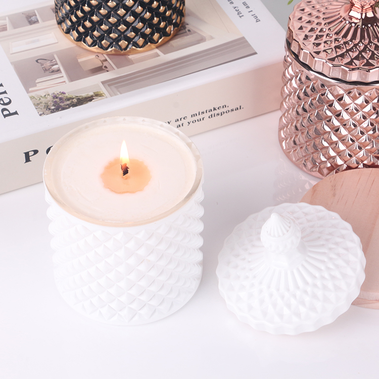 3oz 8oz 16oz colored opaque white matte geo cut glass candle jar with lid