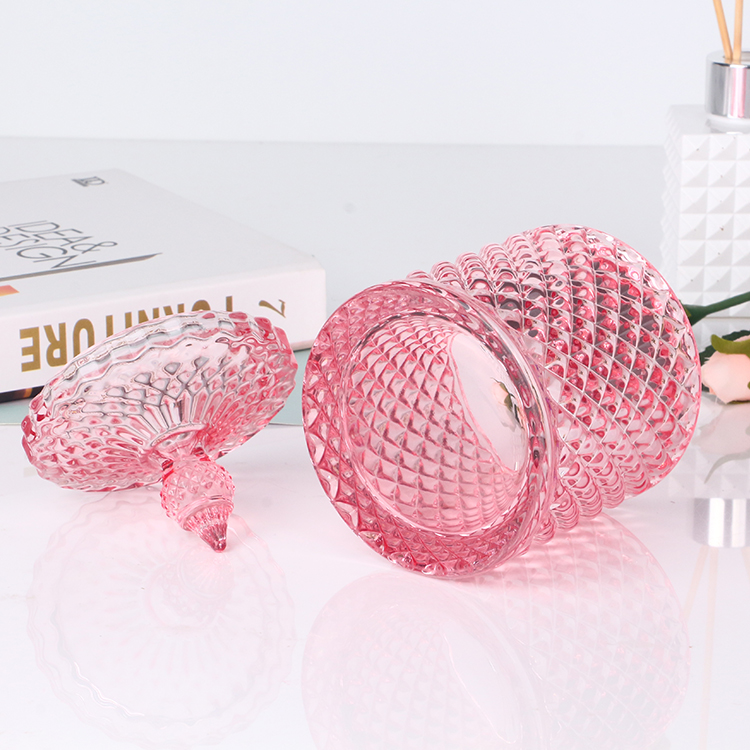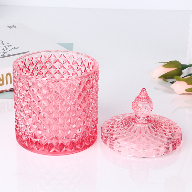 3oz 8oz 16oz colored pink geo cut glass candle jar with lid