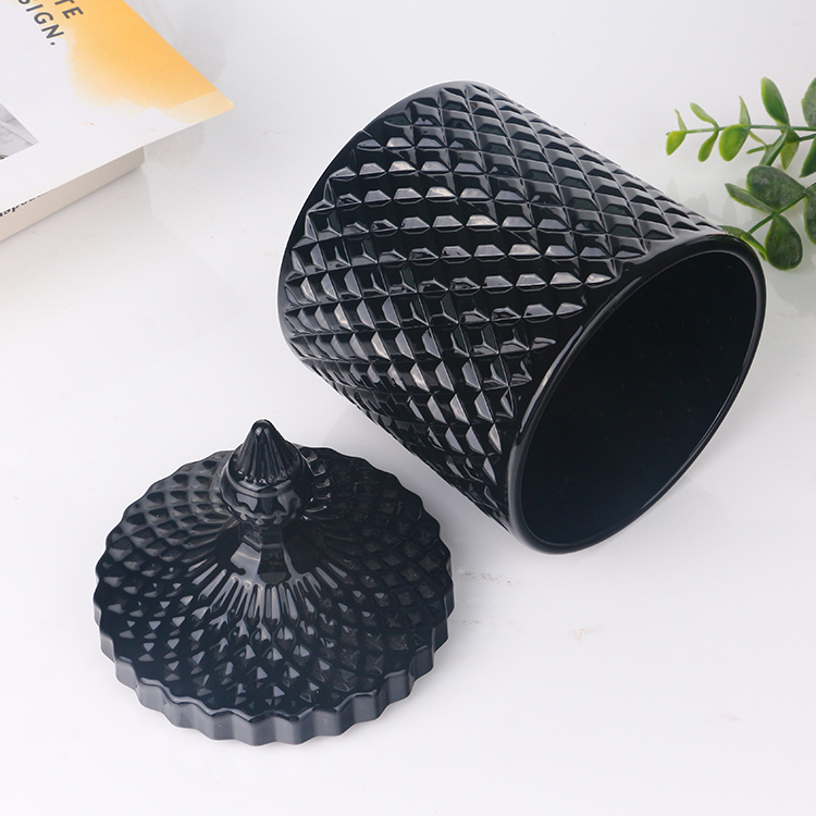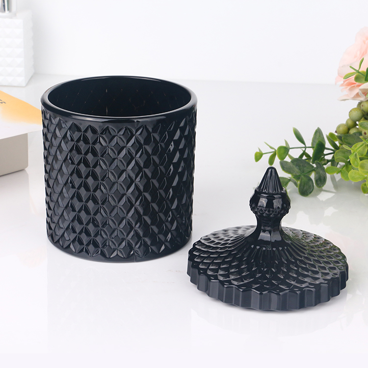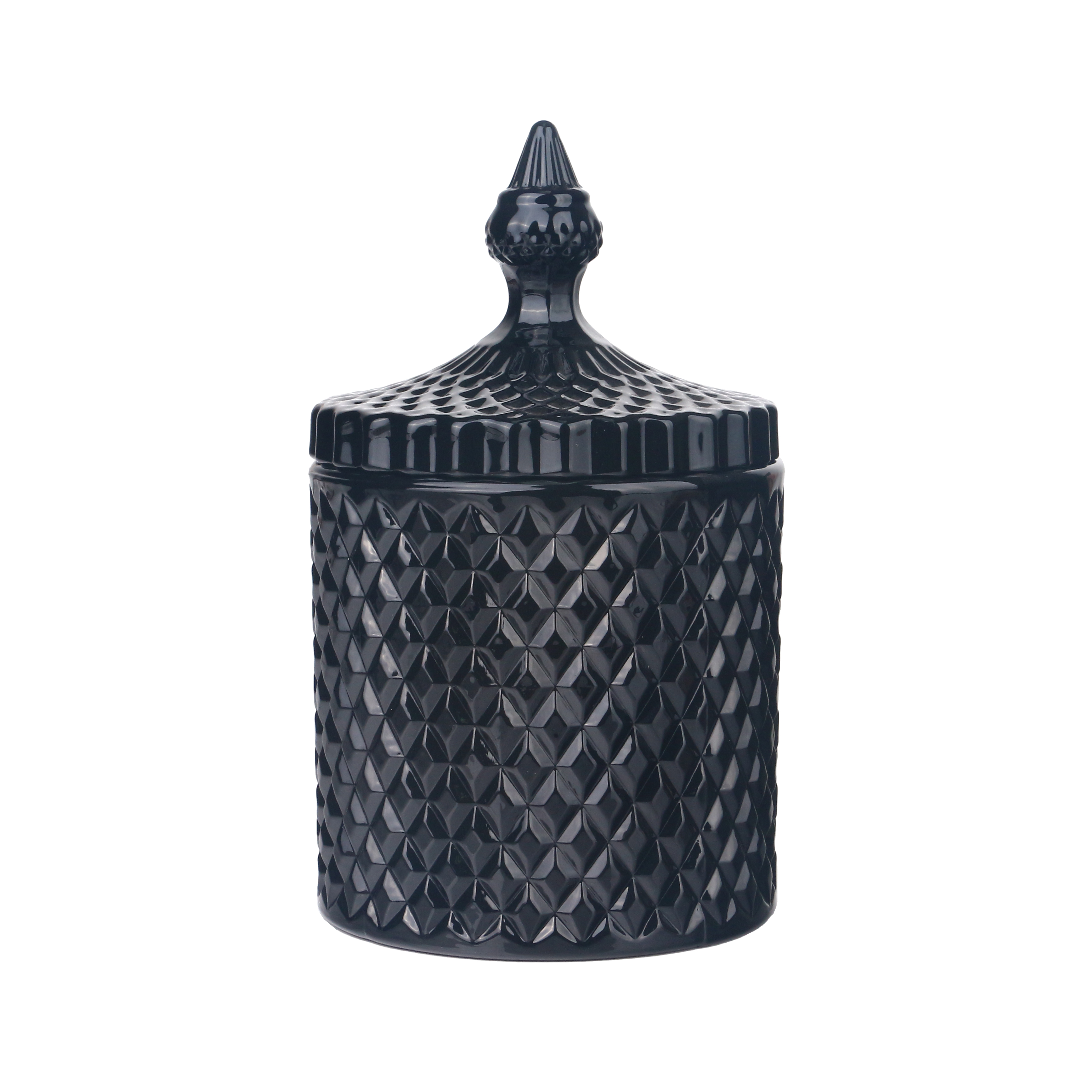 3oz 8oz 16oz opaque black glossy geo cut glass candle holder with lid