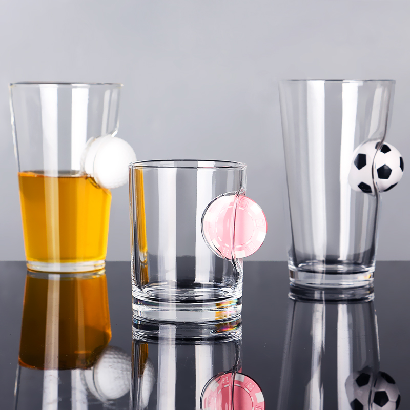 Amazon Hot Selling Casino Chip Embedded Whiskey Glasses Bullet Embed Whiskey Glasses 16oz Beer Pint Glass With Golf Ball