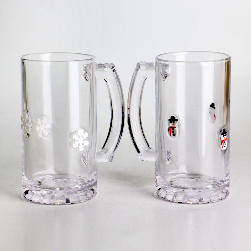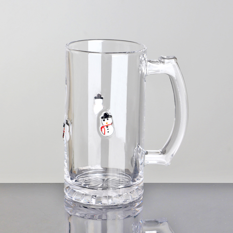 Durable Clear for holiday gifting 1 Pint Snowman inlay design Glass beer tankard with Handle