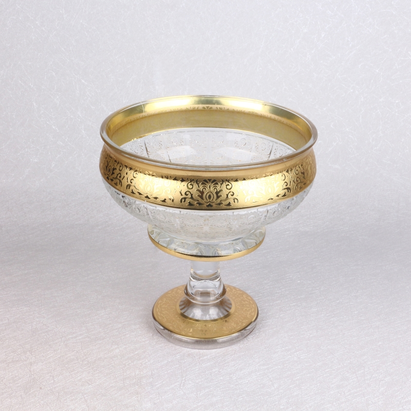 Factory Fast Delivery Bohemia Glass Sunflowers Series Decorative Glass Fruit Bowl With Stand