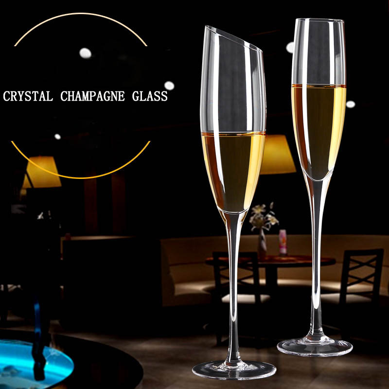 Hand blown crystal wine glasses oblique mouth champagne flutes bulk goblets for for wedding