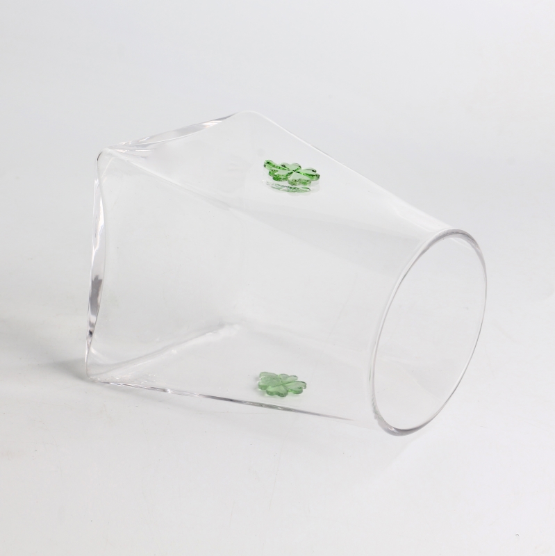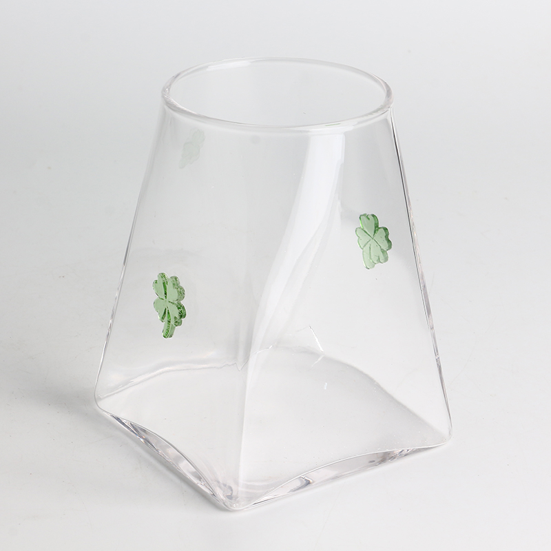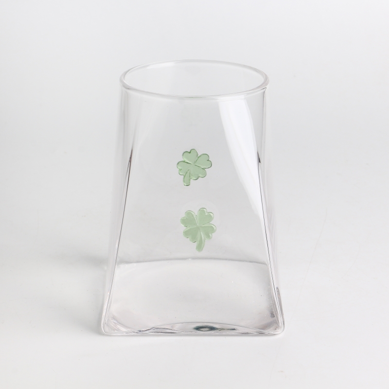 Handcraft 500ml 16oz Clover Inlay Decor High Borosilicate Glass Jar with Airtight Bamboo Lid Food-safe Kitchen Container for Coffee and Spices