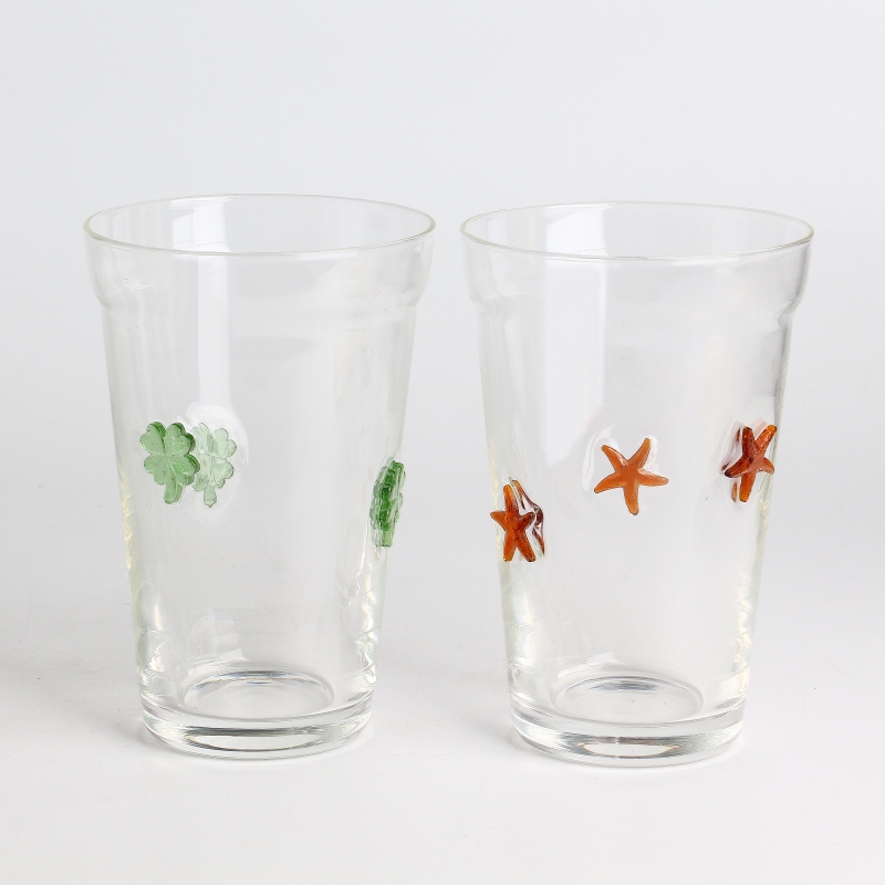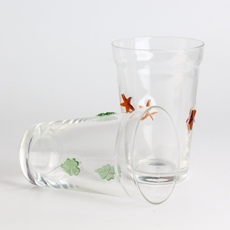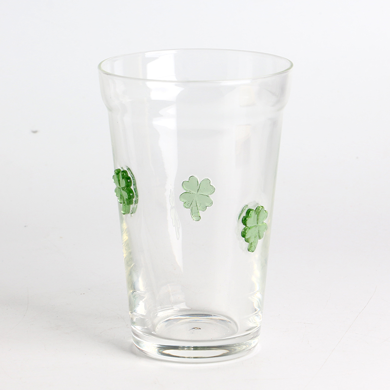 Handmade clear 12oz beer beverage glass drinking tumbler with Clover 3D inlay decoration