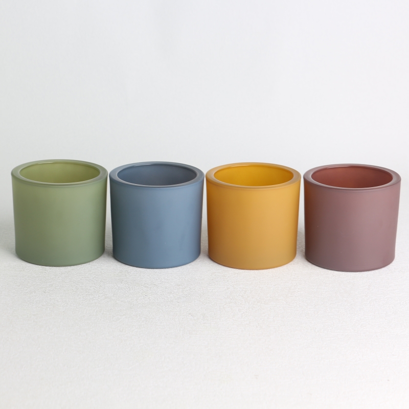 Muti Color Cylindrical Frosted Opaque Sprayed Glass Scented Candle Jar