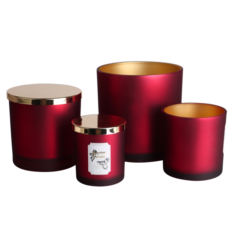 Wholesale Empty 12oz 450ml Red Golden Glass Candle Jars Container Vessel With Metal Lids For Scented Candle Making