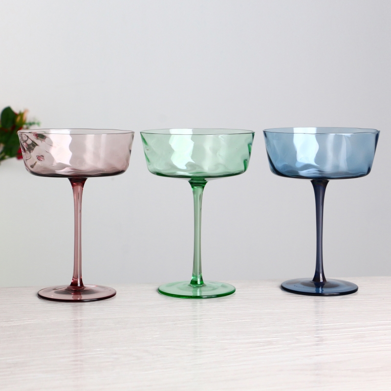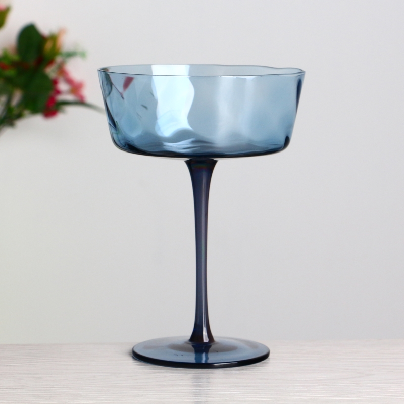 Copo cupê de coquetel cristal ondulado 300ml 10 onças Corido azul
