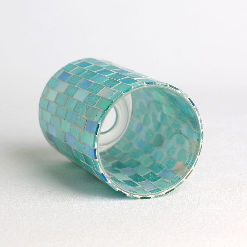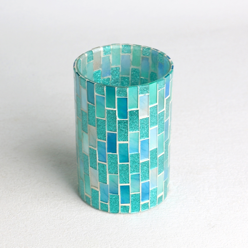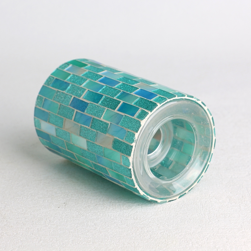 Hecraft Glass Mosaic Brick Surface Cylindrical Candle Ganks