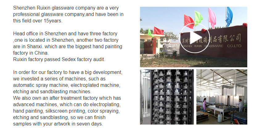Компания Shenzhen RuixinGlassware является одним из поставщиков стеклянной посуды в Китае, поставщиков фарфоровых изделий из Китая, экспортеров свечей. Поставщик стеклянного тумблера, производитель стекла для вина и завод стеклянной чашки.