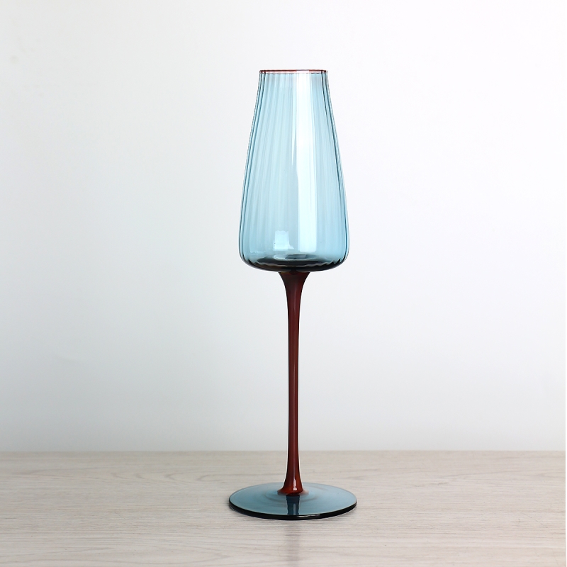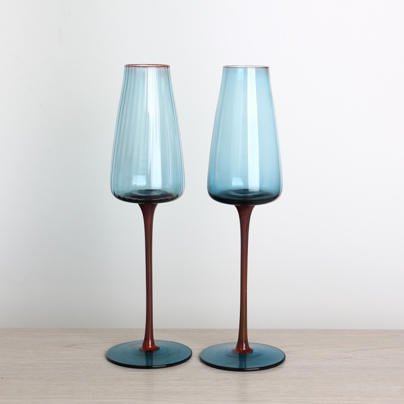 Красный стебель кобальт синий ребристый шампанский стеклянный флейта набор из 2